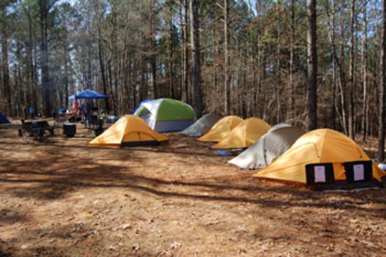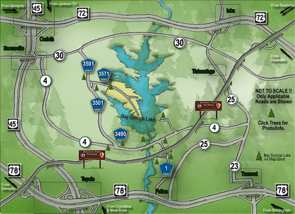 The camp is located about 30 minutes east-southeast (ESE) of Booneville, MS on a peninsula surrounded by Bay Springs Lake. Tent camping is available and you need to bring your own water. There are no permanent facilities. This is a leased property with the Army Corps of Engineers.