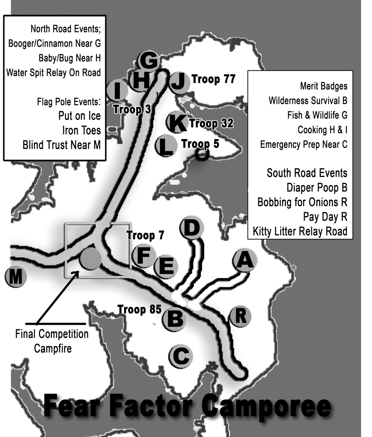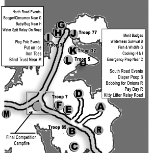 | Bay Springs Scout Base map | The camp is located about 30 minutes east-southeast (ESE) of Booneville, MS on a peninsula surrounded by Bay Springs Lake. Tent camping is available and you need to bring your own water. There are no permanent facilities. | Download |